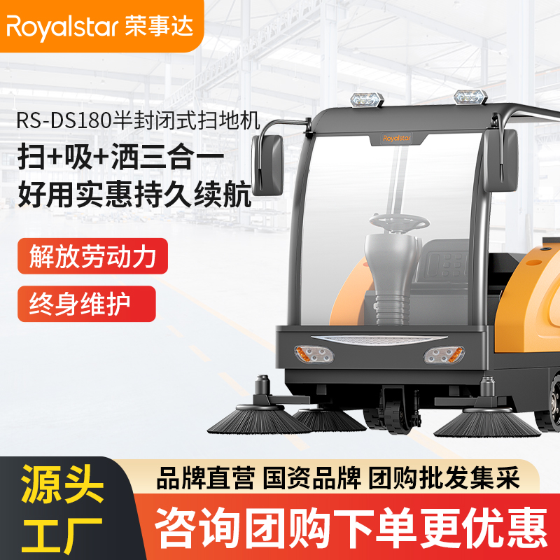 榮事達(dá)RS-DS180 駕駛式掃地機(jī)榮事達(dá)DS180 駕駛式掃地機(jī)配備了四個強(qiáng)力清掃邊刷,大幅度提升了設(shè)備的清掃效率,采用不銹鋼大容量雙水箱,滿足一些大...